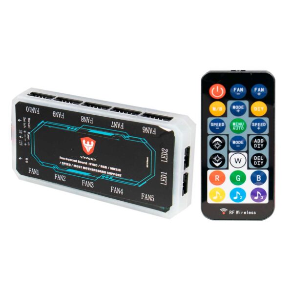 O Controlador para Cooler ACB-4 é ideal para quem busca uma gestão eficiente e personalizada de seu sistema de resfriamento. Com 10 portas para coolers e 2 portas para fitas LED, ele permite conectar e gerenciar diversos componentes com facilidade. A interface 5V A-RGB oferece compatibilidade com placas-mãe para sincronização de iluminação. O controle remoto facilita a configuração e ajuste das luzes e ventoinhas, proporcionando controle rápido e prático.