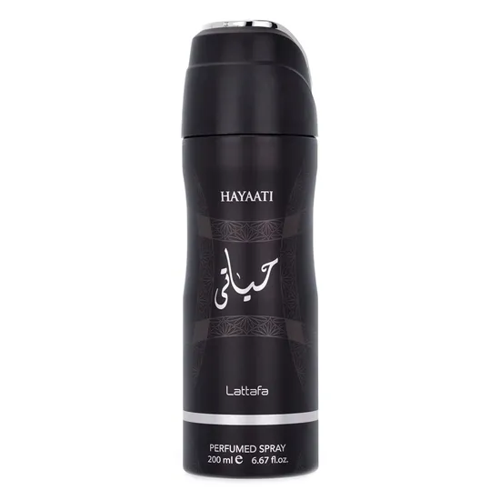 Desodorante Lattafa Hayaati é um spray corporal perfumado que combina fragrância aromática amadeirada com toques frescos e quentes, ideal para uso diário por homens e mulheres. As notas de saída unem maçã e bergamota, seguidas por um coração com nuances de canela e acordes amadeirados que trazem profundidade. A base de almíscar e baunilha confere um acabamento suave e envolvente que permanece no corpo ao longo do dia.